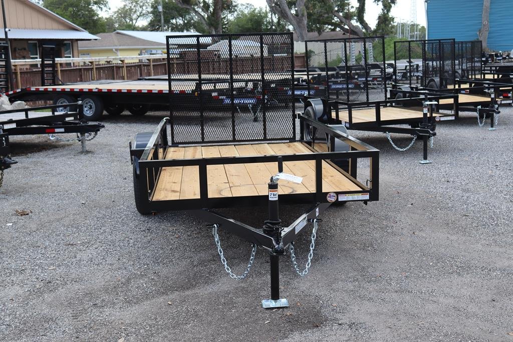 Check out the 2025 Triple Crown 5×10 Utility Trailer at Best Price Trailers. Includes wood deck, LED lights, rear gate, and a 2.75K GVWR. The 2025 Triple Crown 5×10 Utility Trailer is a durable, compact trailer designed for everyday use. It has a 2,750 lb gross vehicle weight rating and a 2,050 lb carrying capacity. Built on an angle steel frame with an A-frame tongue, this trailer features a wood deck, LED lights, and a rear gate for easy loading. It rides on ST205/75R15 radial tires with 5-lug black mod wheels and includes a 2K jack, 2″ A-frame coupler, and four corner tie loops. The trailer is NATM compliant and comes with a spare tire mount for added convenience.
